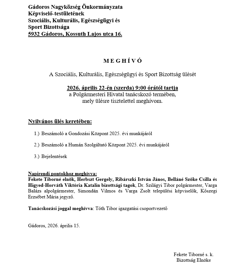 Kezdőlap Híreink 20 ápr 26 2026-04-20 TÁJÉKOZTATÁS! 20 ápr 26 2026-04-20 MEGHÍVÓ! 15 ápr 26 2026-04-15 TÁJÉKOZTATÁS! 14 ápr 26 2026-04-14 ÉRTESÍTÉS! 14 ápr 26 2026-04-14 TÁJÉKOZTATÁS 10 ápr 26 2026-04-10 MEGHÍVÓ! 9 ápr 26 2026-04-09 TÁJÉKOZTATÁS! 1 ápr 26 2026-04-01 TÁJÉKOZTATÁS! 1 ápr 26 2026-04-01 TÁJÉKOZTATÁS! 31 márc 26 2026-03-31 TÁJÉKOZTATÁS! 1 2 3 … 138 Next »