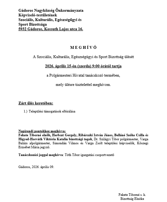 Kezdőlap Híreink 10 ápr 26 2026-04-10 MEGHÍVÓ! 9 ápr 26 2026-04-09 TÁJÉKOZTATÁS! 1 ápr 26 2026-04-01 TÁJÉKOZTATÁS! 1 ápr 26 2026-04-01 TÁJÉKOZTATÁS! 31 márc 26 2026-03-31 TÁJÉKOZTATÁS! 30 márc 26 2026-03-30 TÁJÉKOZTATÁS! 25 márc 26 2026-03-25 FELHÍVÁS! 18 márc 26 2026-03-18 ÉRTESÍTÉS! 13 márc 26 2026-03-13 TÁJÉKOZTATÁS! 12 márc 26 2026-03-12 MEGHÍVÓ 1 2 3 … 138 Next »