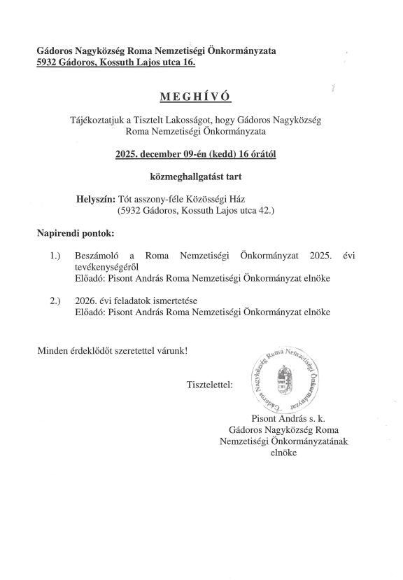 Helyszín: 5932 Gádoros, Iskola utca 19. Nagyközségi Könyvtár
