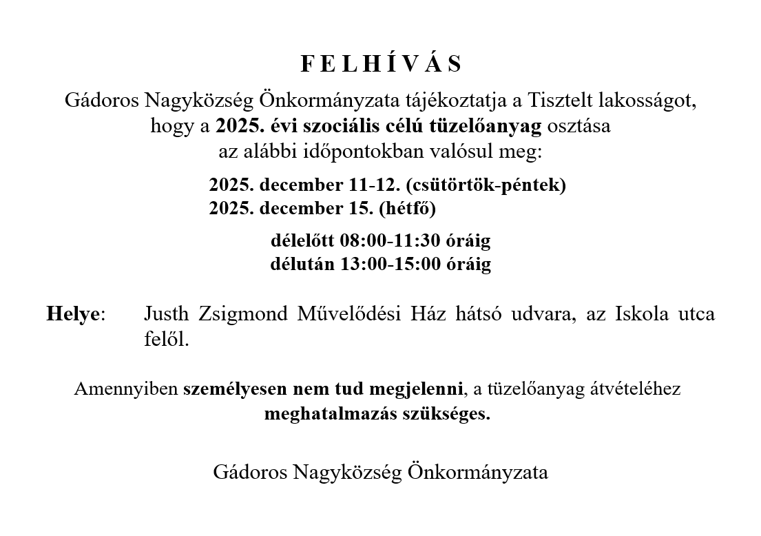 Benyújtó szervezet neve: Gádoros Nagyközség Önkormányzata
