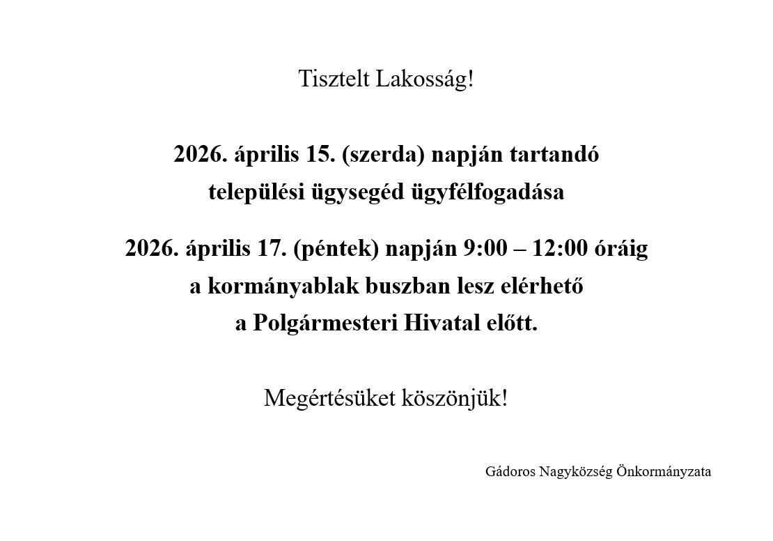 Kezdőlap Híreink 15 ápr 26 2026-04-15 TÁJÉKOZTATÁS! 14 ápr 26 2026-04-14 ÉRTESÍTÉS! 14 ápr 26 2026-04-14 TÁJÉKOZTATÁS 10 ápr 26 2026-04-10 MEGHÍVÓ! 9 ápr 26 2026-04-09 TÁJÉKOZTATÁS! 1 ápr 26 2026-04-01 TÁJÉKOZTATÁS! 1 ápr 26 2026-04-01 TÁJÉKOZTATÁS! 31 márc 26 2026-03-31 TÁJÉKOZTATÁS! 30 márc 26 2026-03-30 TÁJÉKOZTATÁS! 25 márc 26 2026-03-25 FELHÍVÁS! 1 2 3 … 138 Next »