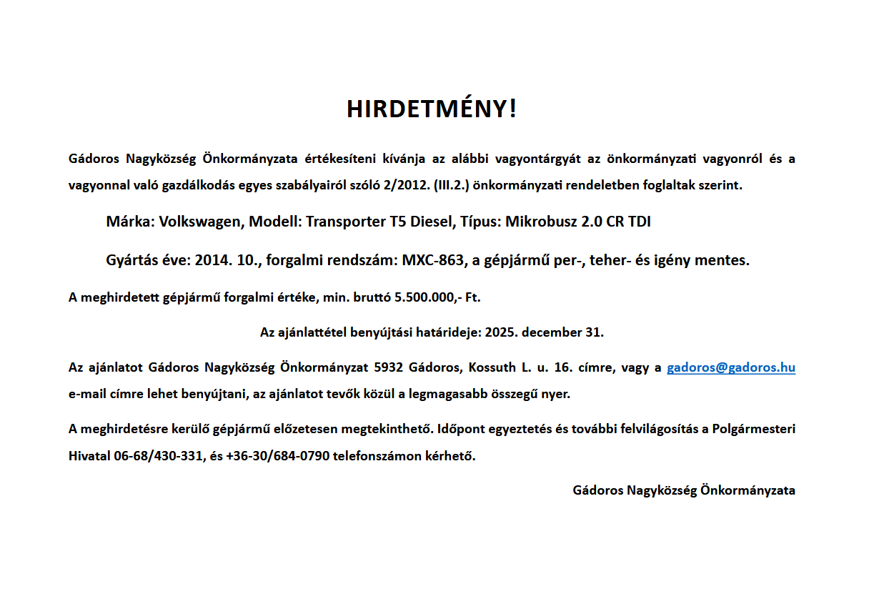 Helyszín: 5932 Gádoros, Iskola utca 19. Nagyközségi Könyvtár